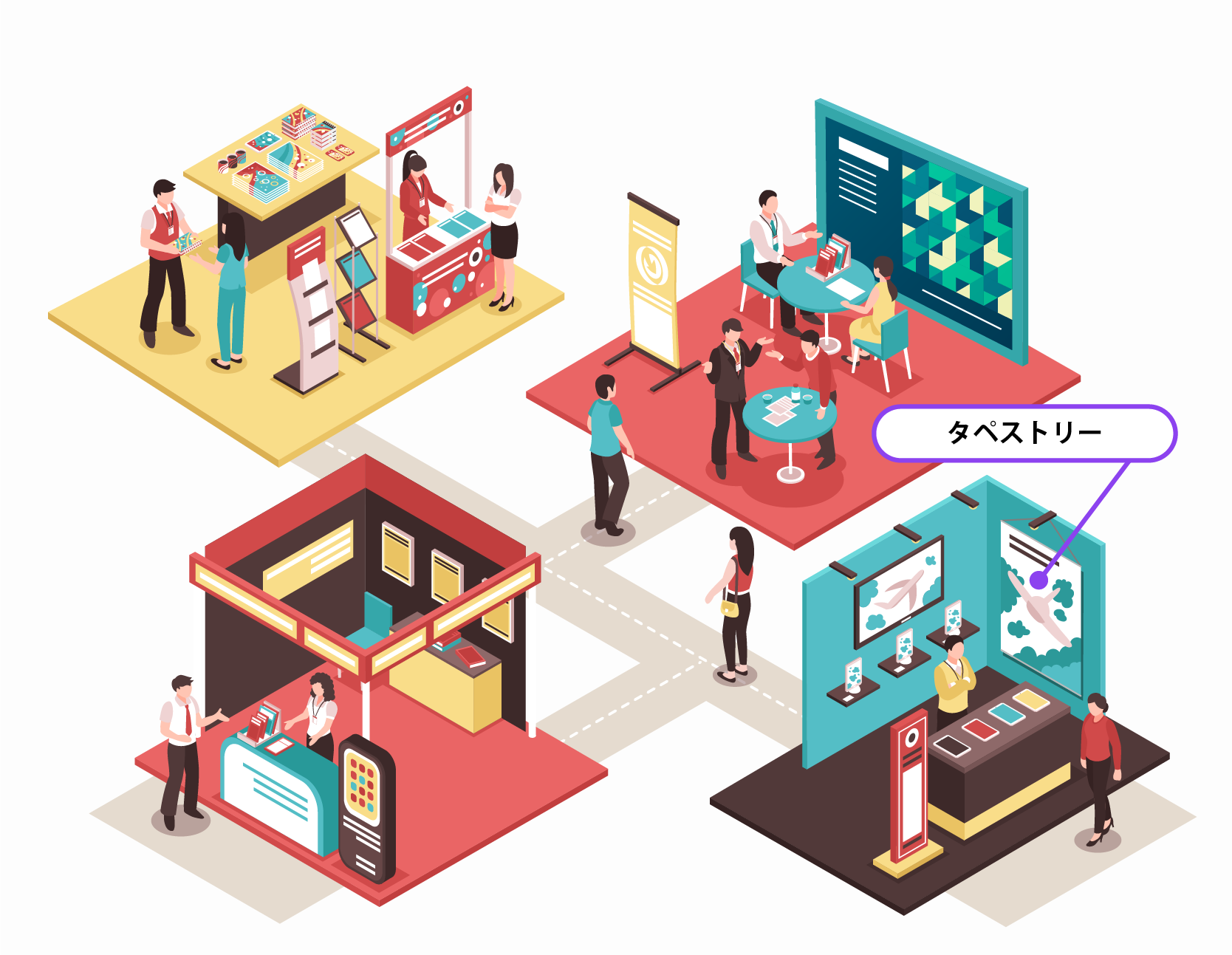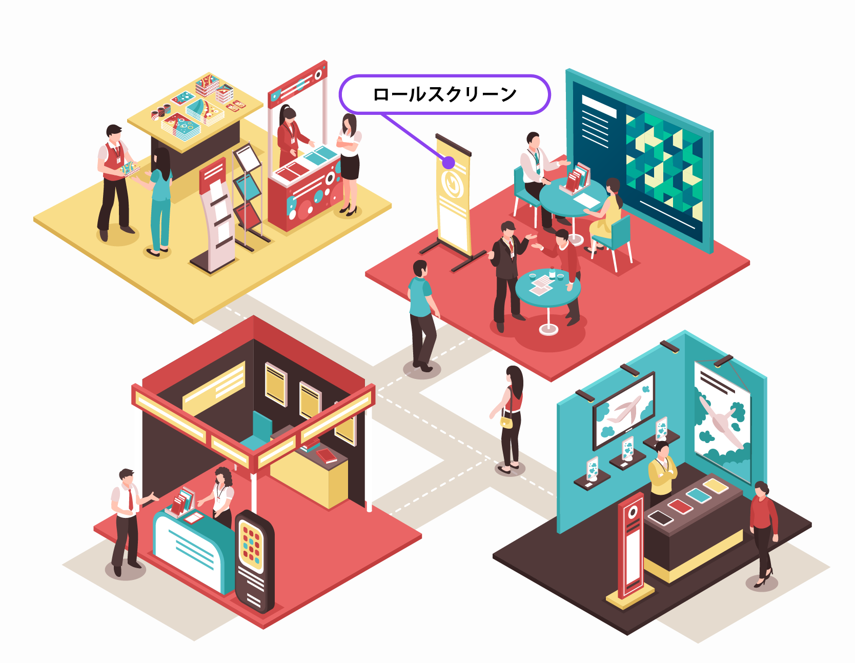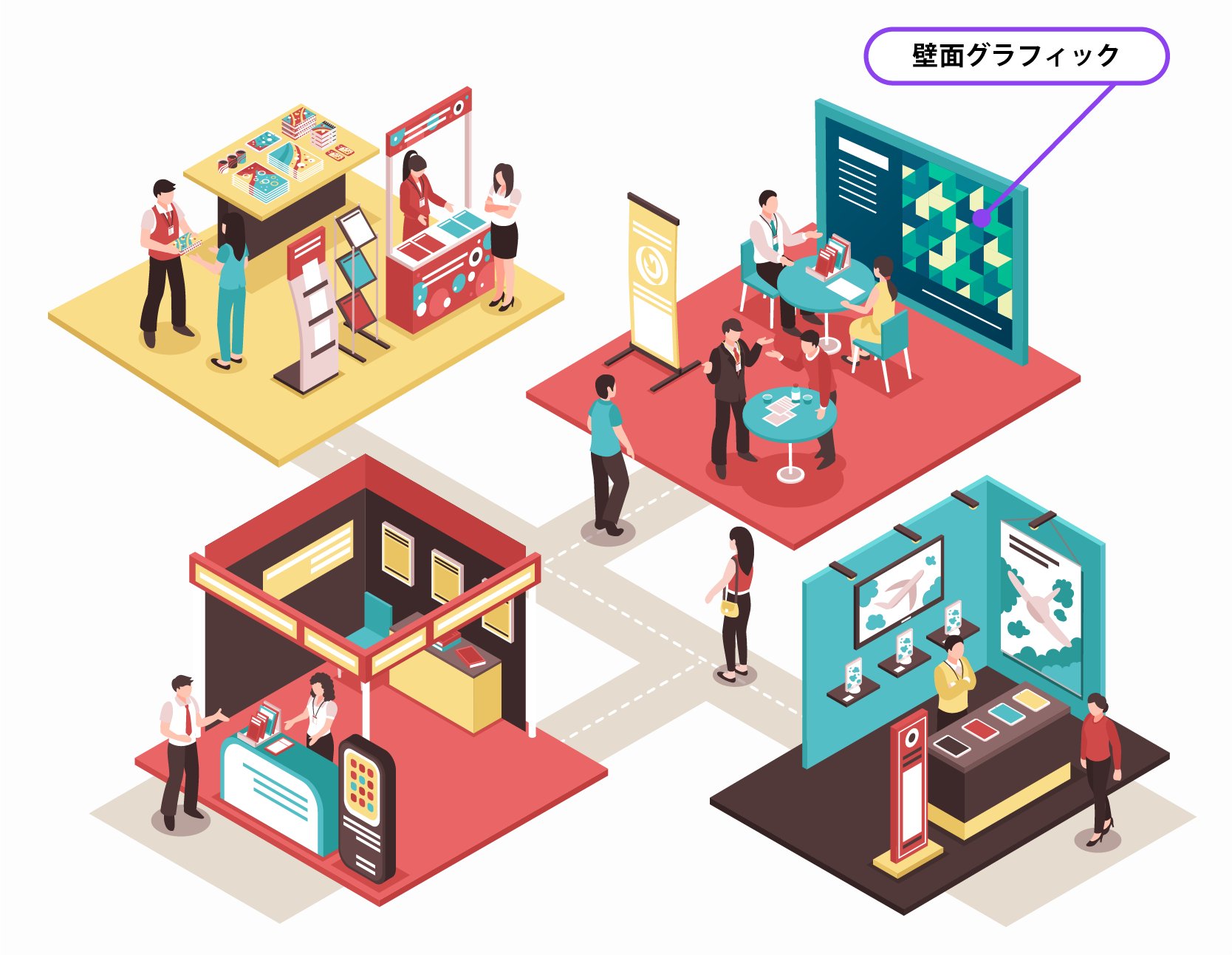 のり付きメディアや経師用メディアなどへのグラフィック出力で、イベント会場をカラフルで楽しくオリジナルで自由なデザイン空間を再現いたします。
