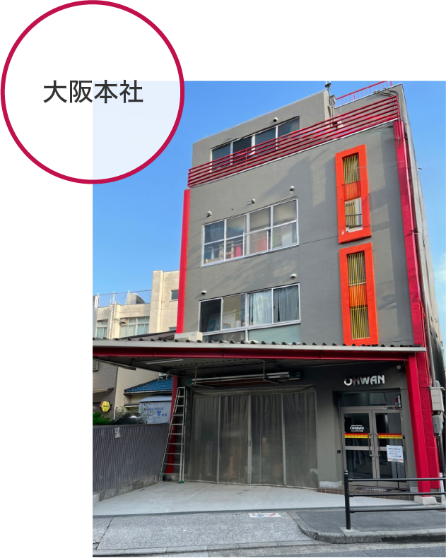 | 所在地 | 大阪本社 〒554-0012 大阪市此花区西九条4-3-26 TEL:06-6467-7717 FAX:06-6467-7718 E-mail Osaka@ohwan.com 東京営業所 〒130-0004 東京都墨田区本所2丁目3-10 TEL:03-5637-9903 FAX 03-5637-9904 E-mail Tokyo@ohwan.com |