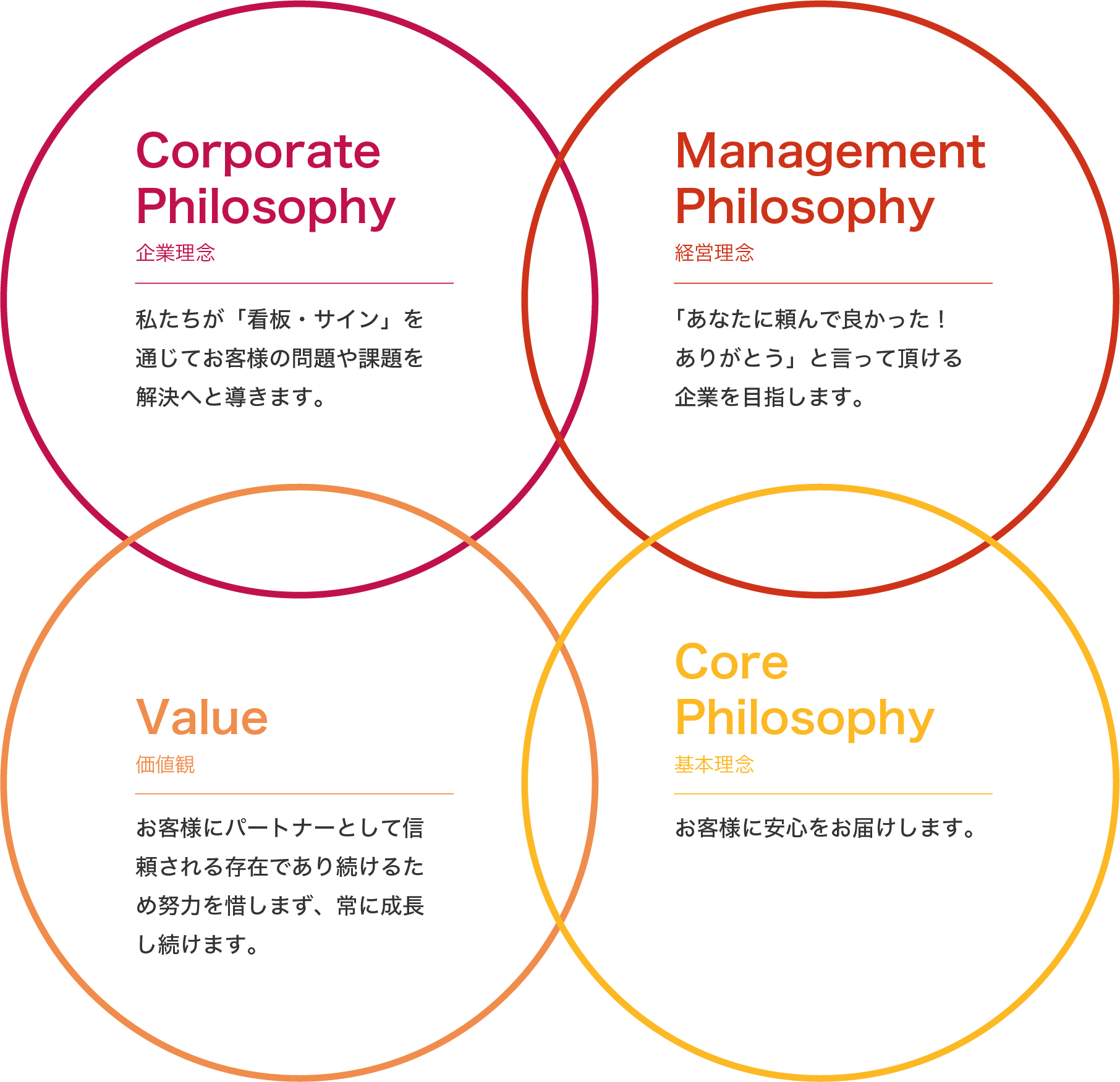 | 業務内容 | 屋内外サインシステム 展示会・イベント・ディスプレイ装飾 CS加工・インクジェット出力によるグラフィックサイン製作・施工 |